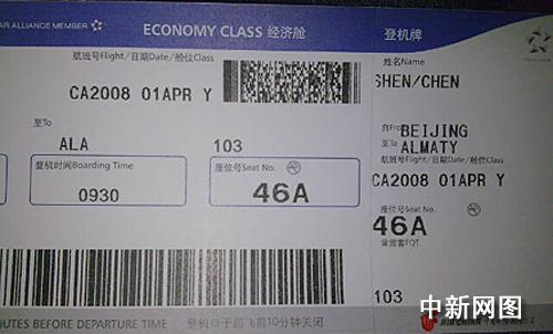 奧運(yùn)包機(jī)機(jī)票登機(jī)牌,航班號(hào)顯示為CA2008。攝影:沈晨