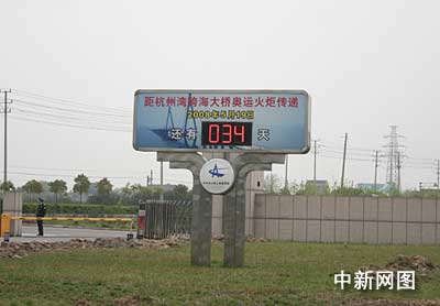 杭州灣跨海大橋做好奧運火炬?zhèn)鬟f最后準備,據(jù)寧波市相關人士介紹說,在大橋寧波段的火炬手將每人跑200米。