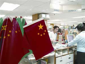 圣火傳遞中大派用場的國旗及區(qū)旗,近期已有居民及社團(tuán)趕購。星光書店有售的四號懸掛國旗,銷售量增加了兩成。另外,同有售國旗的聯(lián)盈體育用品公司負(fù)責(zé)人陳太表示,近期國旗銷售量較平時上升了兩成。她說,過去舉行活動,手搖國旗及四號懸掛旗最受歡迎,然而,國旗畢竟不是一般商品,商家不會以純商業(yè)角度去訂價。以手搖小紙旗為例,僅售兩元;至于四號懸掛國旗則賣六十元左右,不會定價過高。