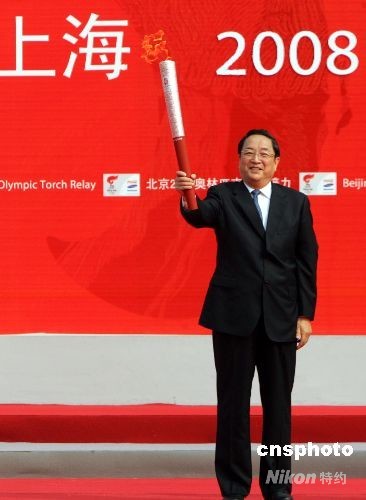 5月23日,中共中央政治局委員,中共上海市委書記俞正聲,出席北京奧運(yùn)會(huì)圣火上海傳遞起跑儀式。 中新社發(fā) 湯彥俊 攝