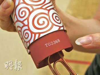 麥佩軒日前在朋友協(xié)助下拆開火炬,取走內(nèi)里的燃料,發(fā)現(xiàn)該火炬刻有編號“3368”,她說:“這是不少人心中的幸運號碼,希望可借此再推高成交價!
