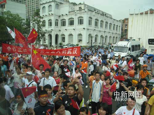 組圖:奧運(yùn)圣火在武漢傳遞 市民傾城迎接(4)