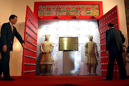 中新網(wǎng)6月3日電 北京奧運(yùn)官網(wǎng)消息,從強(qiáng)生公司和秦始皇兵馬俑博物館聯(lián)合召開(kāi)的新聞發(fā)布會(huì)上獲悉,2008年奧運(yùn)會(huì)期間,國(guó)際奧委會(huì)全球合作伙伴強(qiáng)生公司設(shè)在奧林匹克中心區(qū)內(nèi)的奧林匹克展示中心將展出享譽(yù)全球的秦始皇兵馬俑真品。