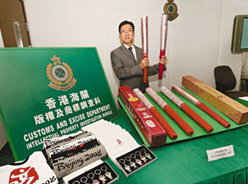 趙育雄重申,海關(guān)一向致力與奧委會合作,打擊一切侵權(quán)活動。根據(jù)紀錄,2005年至今,海關(guān)一共破獲16宗涉及“2008北京奧運會”商品的侵權(quán)案,檢獲大批侵權(quán)鎖匙扣、手表、襟章、貼紙及衣服等,共值3.2萬元。至于偽冒的“祥云火炬”則是首次檢獲。