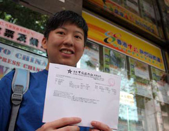 12日下午在灣仔區(qū)的中旅社可看到排隊(duì)購(gòu)票的市民仍然踴躍,隊(duì)伍長(zhǎng)達(dá)數(shù)十人。其中一位楊女士表示,本想早上登入中旅社的網(wǎng)頁(yè)訂購(gòu)門票,但由于網(wǎng)絡(luò)“癱瘓”,忍不住親自到中旅社購(gòu)票。旁邊的李女士也說,因?yàn)榫W(wǎng)上太“塞車”,所以親自到中旅社訂票。