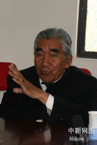 今年75歲的貢布老英雄在接受中新社記者采訪時表示,得知自己成為火炬手時激動心情有如當(dāng)年(1960年)登上珠峰。柳俊武 攝影
