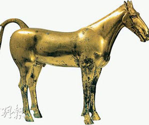 這次展覽命名為“天馬神駿——中國馬的藝術(shù)和文化”,展出各類文物如兵馬俑、銅鐵雕塑和壁畫等,其中30多件展品屬國家一級保護文物,價值不菲。其中如漢代鎏金銅馬,于1981年在陜西興平市漢武帝茂陵東側(cè)出土,據(jù)稱就是以歷史上著名的汗血寶馬為原型。