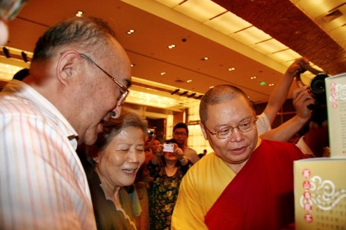 臺(tái)灣佛法山開(kāi)山宗長(zhǎng)圣輪法師所栽植生產(chǎn)的“一炮龍”有機(jī)茶獲得“中國(guó)申奧第一茶”稱(chēng)號(hào),原國(guó)家體委主任伍紹祖參觀了臺(tái)灣有機(jī)茶展位。
