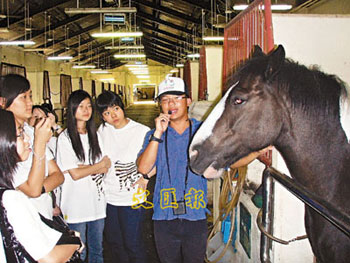 在參觀馬房時,30多名中學(xué)生都好奇地東張西望,大部分都是第一次跟馬匹如此近距離地親密接觸,女生都忍不住鼓起勇氣摸摸馬頭馬頸,“它好溫馴!”張琪琪一邊撫摸馬匹,一邊開心地說。