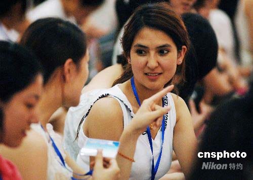 名少數(shù)民族志愿者在北京參加奧運(yùn)頒獎(jiǎng)儀式培訓(xùn)開班儀式。中新社發(fā) 王東明 攝