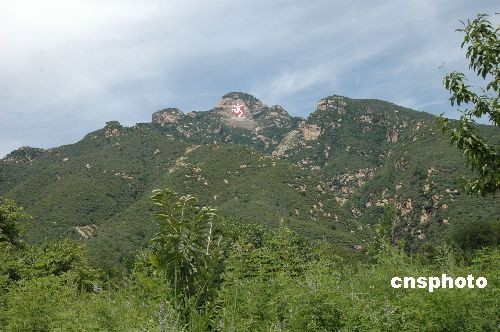 7月13日,高96米、寬38米的大型摩崖石刻“中國(guó)印”在北京密云縣云蒙山云龍澗主峰落成揭幕。中新社發(fā) 賴(lài)海隆 攝