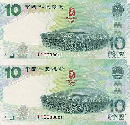 “奧運紀念鈔上背景圖案的天壇的意義與其它普通鈔票的花紋類似,都是在美觀的同時具有防偽的作用,將奧運紀念鈔上下端卷起,‘天壇’的壇頂與天壇準確相連的才是真正的奧運紀念鈔——這也是銀行員工識別假鈔的一種常用‘手段’!