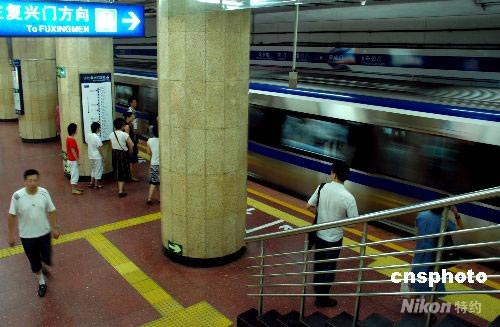 7月14日,一列地鐵駛?cè)氡本┑罔F阜成門站。據(jù)北京市交通委相關(guān)負(fù)責(zé)人介紹,北京地鐵運(yùn)營部門考慮到奧運(yùn)會開閉幕式結(jié)束時(shí)間較晚、客流量加大的實(shí)際情況,地鐵將采取24小時(shí)運(yùn)營。地鐵10號線一期、奧運(yùn)支線、機(jī)場線已完成工程建設(shè)和設(shè)備調(diào)試,即將開通試運(yùn)營。預(yù)計(jì)開通試運(yùn)營時(shí)間將定在7月20日之前,三條新線會在一天同時(shí)開通試運(yùn)營。中新社發(fā) 楊慧峰 攝