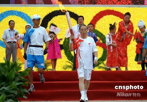 7月15日,奧運(yùn)火炬在吉林松原傳遞,火炬手李述跑出首棒火炬。中新社發(fā) 廖攀 攝