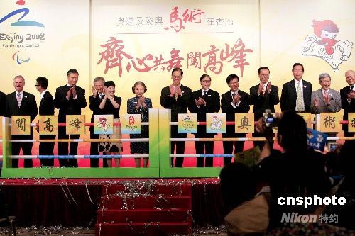 第二十九屆奧運會馬術(shù)比賽(香港)有限公司,七月十五日在香港會展中心舉辦“北京2008年奧運及殘奧馬術(shù)比賽誓師大會”。特區(qū)民政事務(wù)局局長曾德成、馬術(shù)比賽(香港)有限公司行政總裁林煥光、港體育協(xié)暨奧委會會長霍震霆以及各合作伙伴代表出席誓師儀式 ,表達同心協(xié)力辦好北京奧運及殘奧馬術(shù)比賽的決心。中新社發(fā) 張勤 攝