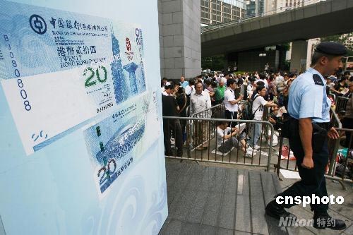 圖:奧運紀念鈔票在香港火爆開售(2)