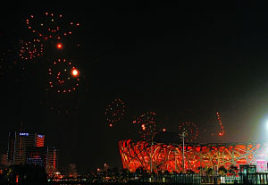 組圖:“鳥(niǎo)巢”試放煙花現(xiàn)場(chǎng):“五環(huán)”盛放夜空(2)
