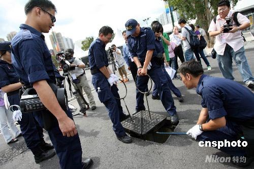 七月十八日,香港警方特別行動(dòng)隊(duì)在沙田奧運(yùn)馬術(shù)賽場(chǎng)周?chē)M(jìn)行搜查。香港奧運(yùn)馬術(shù)的安保工作目前仍處于最初階段,未來(lái)數(shù)周內(nèi)將會(huì)徹底搜查所有的奧運(yùn)馬術(shù)場(chǎng)地,然后封鎖。中新社發(fā) 洪少葵 攝