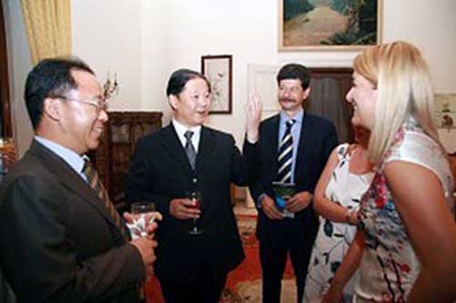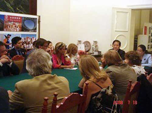 意大利媒體記者對孫玉璽大使在他們赴京采訪奧運(yùn)前邀請大家出席北京奧運(yùn)會倒計時20天的慶;顒颖硎靖兄x,祝愿北京奧運(yùn)取得圓滿成功,并表示將努力投入奧運(yùn)報道工作,增進(jìn)意民眾對北京奧運(yùn)和今日中國的了解。(博源)