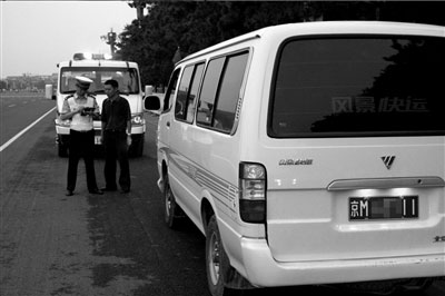 一輛尾號為“1”的白色面包車違規(guī)上路被查!⊥ㄓ崋T許建民攝