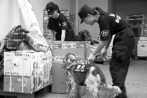 據(jù)了解,北京鐵警目前共有6名女訓導員,她們攜搜爆犬對車站行李房的托運物品進行二次安檢,此前這些行李已經(jīng)通過了安檢儀掃描。