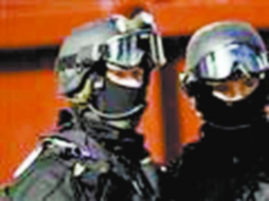 “法國(guó)總統(tǒng)安全組”外出執(zhí)行任務(wù),每人都要攜帶一只“公文包”,里面包括一支MP5K沖鋒槍和彈藥、麻醉手榴彈、眩暈手榴彈等。安全組還使用特殊的作戰(zhàn)裝備,包括地磁儀、炸彈探測(cè)儀和警犬等,還攜帶可以折疊的“凱夫拉”防彈牌,一旦總統(tǒng)車隊(duì)遭到突然襲擊,安全小組成員會(huì)馬上使用“凱夫拉”組成一道防護(hù)墻,阻擋襲擊(見(jiàn)上圖)。
