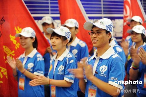 7月24日,北京地鐵社會(huì)志愿者發(fā)出“微笑宣言”服務(wù)奧運(yùn),2萬多名來自地鐵公司和28所高校的地鐵社會(huì)志愿者加入服務(wù)奧運(yùn)活動(dòng)。 中新社發(fā) 陳文 攝