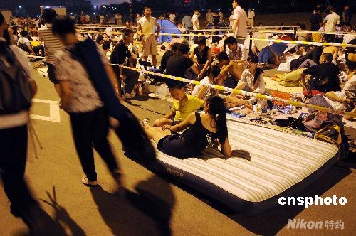 7月25日凌晨,北京兩萬(wàn)余市民晝夜排隊(duì)期盼買(mǎi)到自己喜愛(ài)的奧運(yùn)項(xiàng)目賽事門(mén)票,F(xiàn)場(chǎng)有公安、城管、醫(yī)療救護(hù)、志愿者等工作人員24小時(shí)維持秩序,陪護(hù)市民有序購(gòu)票。 中新社發(fā) 陳文 攝