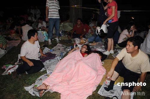 7月25日凌晨,北京兩萬余市民夜宿街頭苦盼“奧運票”。中新社發(fā) 陳文 攝