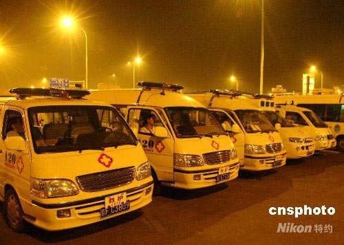 圖:奧運(yùn)門票購買點(diǎn)前救護(hù)車隨時(shí)待命