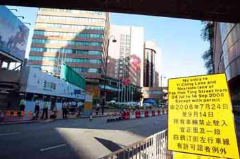 此外,帝都酒店對(duì)開(kāi)原來(lái)三線行車的白鶴汀街,其中長(zhǎng)二百米的一段慢線,由昨日早上開(kāi)始封閉,警方同時(shí)設(shè)置路障,只準(zhǔn)持許可證的車輛駛?cè)耄⿲?duì)現(xiàn)場(chǎng)交通并沒(méi)有造成很大阻塞,只有部分巴士和專線小巴站被迫停用,近二十條路線受影響,市民需繞路到沙田公園對(duì)開(kāi)的臨時(shí)巴士站乘車。有關(guān)封路措施將延至9月14日傷殘奧運(yùn)會(huì)結(jié)束,所有運(yùn)動(dòng)員離開(kāi)后才會(huì)重開(kāi)。
