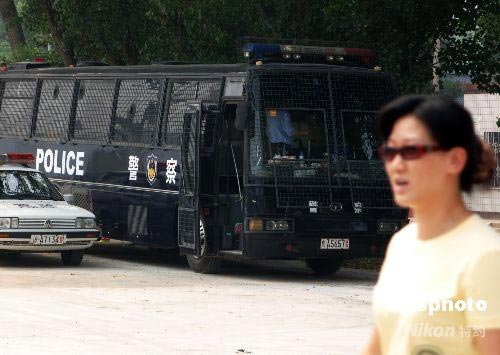 停在賣(mài)票點(diǎn)附近的防爆警車(chē)。中新社發(fā) 王東明 攝