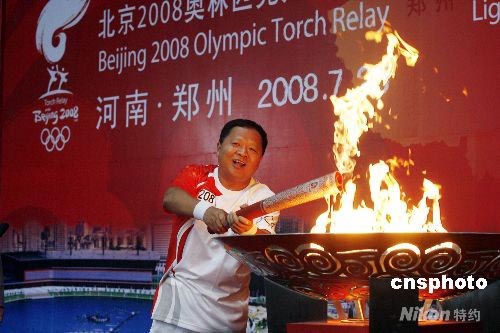 圖:奧運圣火在河南鄭州熊熊燃燒