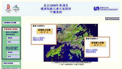 公眾人士可以從天文臺的馬術(shù)比賽天氣網(wǎng)站獲得最新比賽場地的詳細(xì)天氣預(yù)測、天氣警告、實(shí)時天氣狀況及環(huán)境保護(hù)署提供的賽場區(qū)域空氣污染指數(shù)。