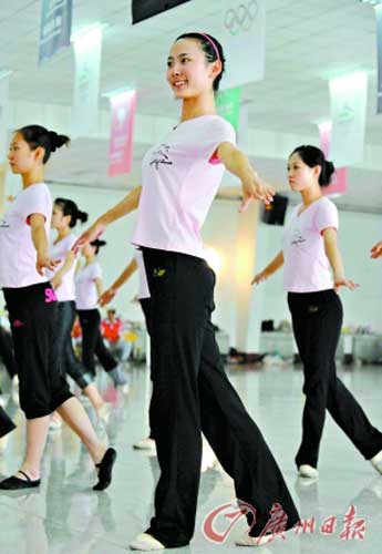 馬妮是這次強化培訓(xùn)的形體老師,也是我國三軍儀仗隊的形體教練。馬妮說,自己給她們打90分!霸谖覀儍芍艿男误w強化培訓(xùn)中,不僅有民族舞,還有古典舞和芭蕾舞。由于中國的東方人形體不同于歐美人,因此我們通過這些舞蹈來塑造出我們中國姑娘獨有的優(yōu)雅、含蓄,我經(jīng)常跟她們說的是,拉長美麗的頸,打開高貴的胸,伸展優(yōu)雅的手臂!