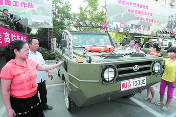 一些市民第一次見(jiàn)到水陸兩用車(chē)格外新奇,圍著車(chē)子摸摸看看。