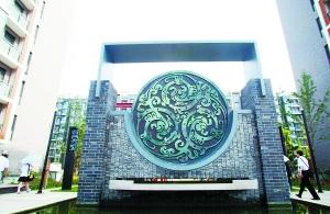 不知不覺地來到宿舍前,居住區(qū)共有運動員公寓樓42棟。我被樓的標志牌所吸引,上面寫著國奧村多少棟樓,旁邊寫有“DREAM WORLD 2008”(夢想世界2008),鑲邊全是長城圖案。樓旁邊的隔斷是老四合院式的磚瓦,一片古樸味道。