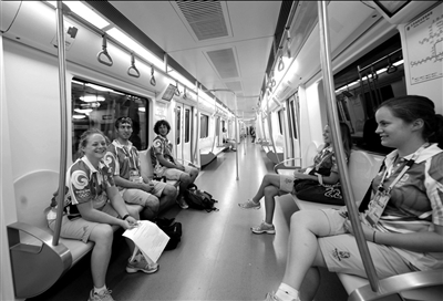 昨天,來自美國的志愿者乘坐奧運支線返回住處。