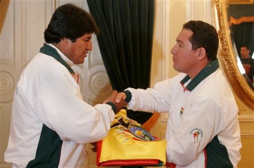 中新網(wǎng)7月29日電 玻利維亞總統(tǒng)莫拉萊斯7月28日在?偨y(tǒng)府為即將出征北京奧運(yùn)會的玻體育代表團(tuán)舉行出征儀式并授旗。據(jù)外交部網(wǎng)站消息,總統(tǒng)府部長金塔納、體育代部長阿吉拉爾、奧委會主席埃斯帕尼亞和中國駐玻利維亞大使趙五一等出席授旗儀式。