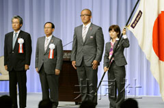中新網(wǎng)7月29日電 據(jù)日本共同社報(bào)道,日本奧運(yùn)代表團(tuán)成立儀式昨天在東京隆重舉行,擔(dān)任選手隊(duì)長的柔道男子奧運(yùn)冠軍鈴木桂治宣誓稱“將抱著爭光的決心,發(fā)誓為世界和平作出貢獻(xiàn)”。擔(dān)任日本代表團(tuán)旗手的是19歲的女子乒乓球選手福原愛。她略顯緊張地從代表團(tuán)團(tuán)長福田富昭手中接過了巨大的團(tuán)旗。