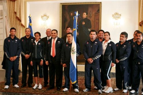 薩爾瓦多總統(tǒng)埃利亞斯-安東尼奧-薩卡28日向該國(guó)參加北京奧運(yùn)會(huì)的運(yùn)動(dòng)員代表授予國(guó)旗。