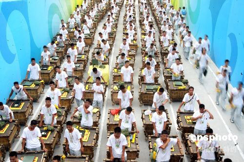 第29屆夏季奧運(yùn)會開幕式彩排在北京國家體育場“鳥巢”封閉進(jìn)行,眾多參演人員攜帶各種道具進(jìn)入體育場。 中新社發(fā) 武仲林 攝