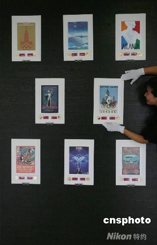 由國際奧組委授權(quán)、國際奧林匹克博物館館藏珍品《百年奧運(yùn)——理解奧運(yùn)會(huì)金牌海報(bào)典藏》大全套首批7月30日抵京,從即日起開始發(fā)售。該典藏首次集齊歷屆奧運(yùn)會(huì)金牌,首次以絲綢印刷歷屆海報(bào)。圖為工作人員接收首批產(chǎn)品,并懸掛布置展出現(xiàn)場(chǎng)。 中新社發(fā) 李英 攝