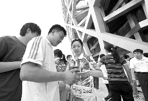 除了進(jìn)公共區(qū)的安檢,觀眾進(jìn)鳥巢只需檢票,同時,乘坐奧運(yùn)支線進(jìn)公共區(qū)后也不需再安檢。