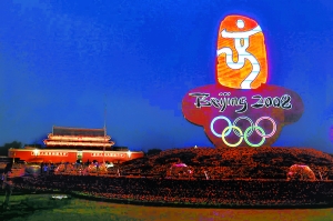 以“中國(guó)印·舞動(dòng)的北京”為主景的天安門廣場(chǎng)中心花壇,用祥云圖案為襯托,在主景周圍形成圓形花壇,并在花壇外圍布置低噴泉和迷霧裝置,烘托奧運(yùn)會(huì)歡樂(lè)祥和的氣氛。其中“中國(guó)印”為L(zhǎng)ED光源燈箱,可以旋轉(zhuǎn),主景底座高2.9米,頂高16.9米,花壇直徑為40米。