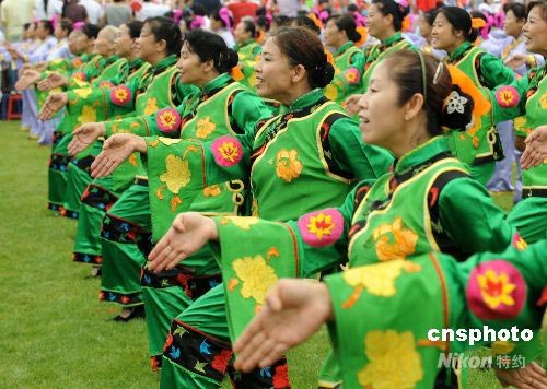 圖:唐山群眾跳“皮影操”迎接奧運(yùn)火炬