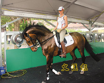 這位上屆雅典奧運盛裝舞步金牌得主,在練習場刻意走近比賽主場地站著,她的馬夫手拿著攝錄機正為她拍攝紀錄,用于個人網(wǎng)站。格倫斯文一邊說,“薩里內羅”就站在主場地,迎著風,馬蹄不時踏著場地小跳步,表現(xiàn)得十分興奮,渾身是勁。