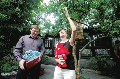 昨天,西城區(qū)旅游局為德國(guó)夫婦皮特和西蒙娜舉行了簡(jiǎn)短的歡迎儀式,并向他們贈(zèng)送奧運(yùn)福娃和胡同游覽地圖。這對(duì)年輕的德國(guó)夫婦是本市首批入住奧運(yùn)人家的外國(guó)游客。他們將在奧運(yùn)人家居住五天,然后返回上海工作。