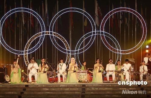 7月31日晚,中國殘疾人藝術團冒雨在奧運村表演《我的夢》,吸引不少運動員觀看。據悉,中國殘疾人藝術團將在北京殘奧會開、閉幕式上進行表演。 中新社發(fā) 武仲林 攝