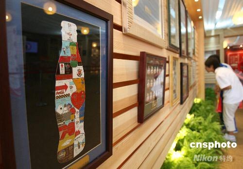 圖:奧運村紀(jì)念章交換中心展示紀(jì)念章組合